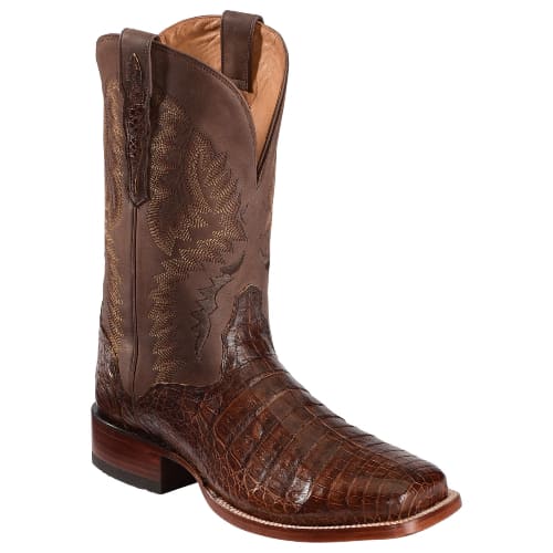 These boots feature premium caiman leather with a high-gloss finish, offering a sophisticated western look that transitions perfectly from the ranch to a formal event.